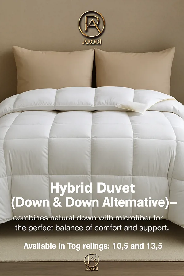 لحاف فاخر بتصميم هجين مبتكر يجمع بين الريش الطبيعي والبديل الصناعي، ليخلق توازناً مثالياً بين الراحة الفائقة والدعم المثالي.